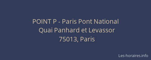 Voici les horaires de POINT P - Pont National situé à Paris,
