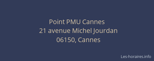 Vous pouvez renseigner les horaires Point PMU situé à Cannes,