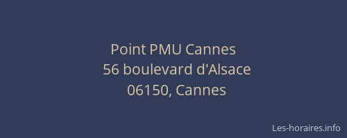 Vous pouvez renseigner les horaires Point PMU situé à Cannes,