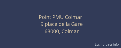 Vous pouvez renseigner les horaires Point PMU situé à Colmar,