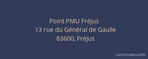 Vous pouvez renseigner les horaires Point PMU situé à Fréjus,