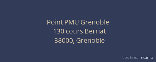 Vous pouvez renseigner les horaires Point PMU situé à Grenoble,