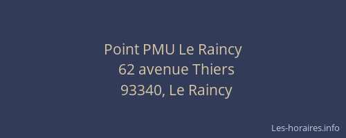 Vous pouvez renseigner les horaires Point PMU situé à Le Raincy,