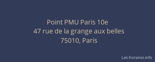 Pour connaître les horaires de Point PMU 10e n'hésitez pas à téléphoner à ce numéro : 01 42 45 22 47