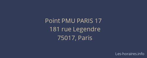 Vous pouvez renseigner les horaires Point PMU PARIS 17 situé à Paris,
