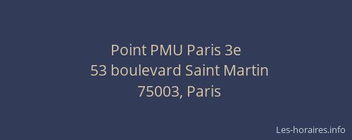 Vous pouvez renseigner les horaires Point PMU 3e situé à Paris,