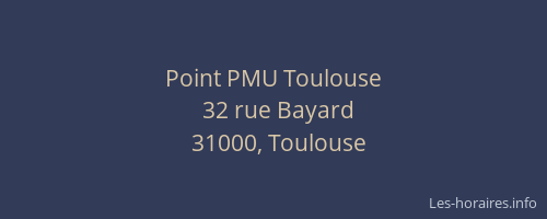 Vous pouvez renseigner les horaires Point PMU situé à Toulouse,