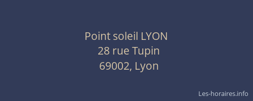 Voici les horaires de Point soleil LYON situé à Lyon 2ème,