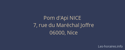 Voici les horaires de Pom d'Api NICE situé à Nice,