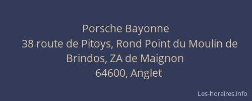 Voici les horaires de Porsche Bayonne situé à Anglet,
