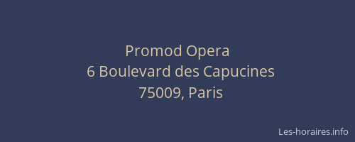 Voici les horaires de Promod Opera situé à Paris 9ème,
