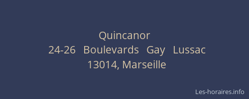 Voici les horaires de Quincanor situé à Marseille 14ème,