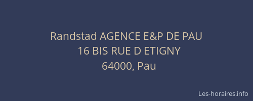Voici les horaires de Randstad AGENCE E&P DE PAU situé à Pau,
