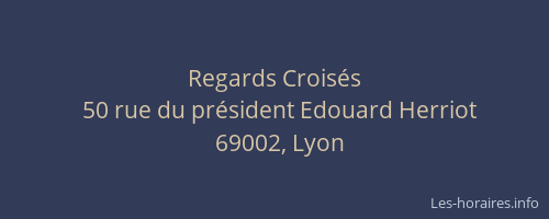 Voici les horaires de Regards Croisés situé à Lyon 2ème,