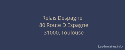 Voici les horaires de Relais Despagne situé à Toulouse,