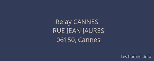 Voici les horaires de Relay CANNES situé à Cannes,