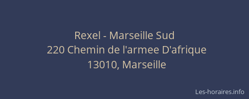 Voici les horaires de Rexel - Sud situé à Marseille,