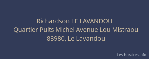 Voici les horaires de Richardson LE LAVANDOU situé à Le Lavandou,