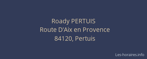Voici les horaires de Roady PERTUIS situé à Pertuis,