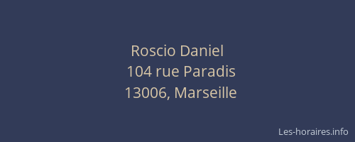 Vous pouvez renseigner les horaires Roscio Daniel situé à Marseille 6ème,
