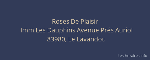 Voici les horaires de Roses De Plaisir situé à Le Lavandou,