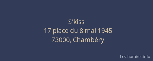 Voici les horaires de S'kiss situé à Chambéry,