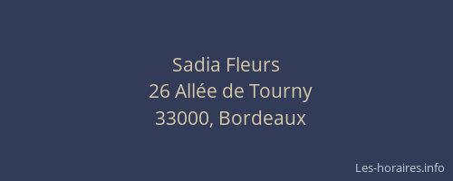 Voici les horaires de Sadia Fleurs situé à Bordeaux,