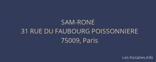 Voici les horaires de SAM-RONE situé à Paris 9ème,