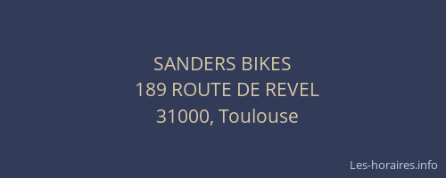 Vous pouvez renseigner les horaires SANDERS BIKES situé à Toulouse,