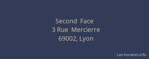 Voici les horaires de Second Face situé à Lyon 2ème,