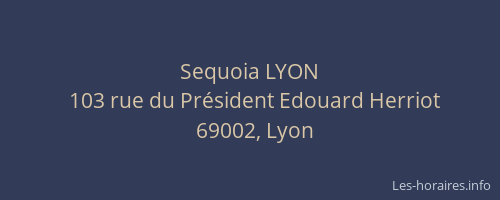 Voici les horaires de Sequoia LYON situé à Lyon 2ème,