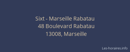 Voici les horaires de Sixt - Rabatau situé à Marseille,
