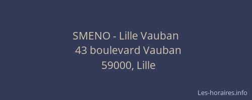 Voici les horaires de SMENO - Vauban situé à Lille,