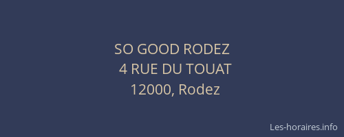 Voici les horaires de SO GOOD RODEZ situé à Rodez,