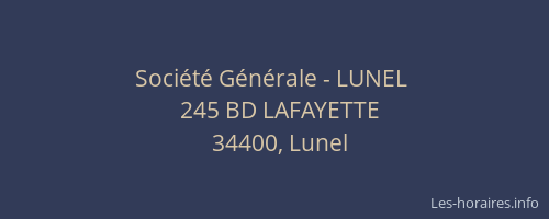 Voici les horaires de Société Générale - LUNEL situé à Lunel,