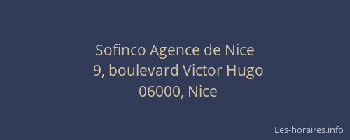 Voici les horaires de Sofinco Agence de situé à Nice,
