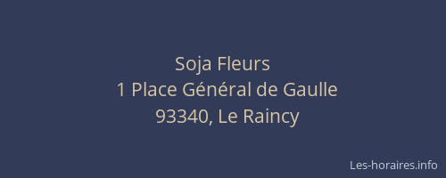 Voici les horaires de Soja Fleurs situé à Le Raincy,