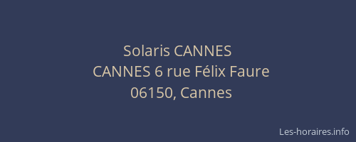 Voici les horaires de Solaris CANNES situé à Cannes,