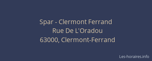 Voici les horaires de Spar - Clermont Ferrand situé à Clermont-Ferrand,