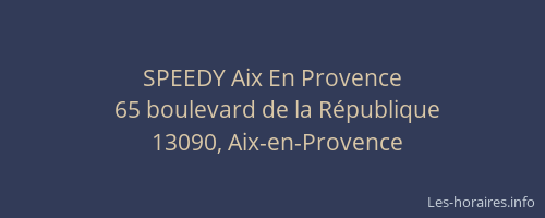 Voici les horaires de SPEEDY Aix En Provence situé à Aix-en-Provence,