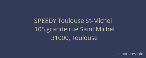 Vous pouvez renseigner les horaires SPEEDY St-Michel situé à Toulouse, vous pouvez trouver les informations de contact, comme sa localisation à 105 grande rue Saint Michel, ainsi que les coordonnées GPS, lattitude : 43.5894063 et longitude : 1.4454166. Garage, voici l’activité de SPEEDY Toulouse St-Michel