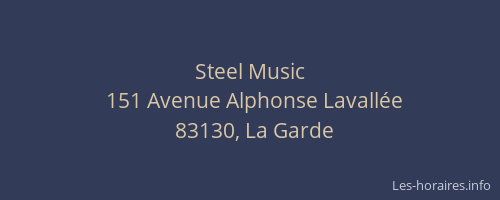 Voici les horaires de Steel Music situé à La Garde,