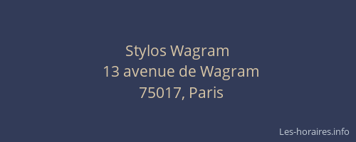 Voici les horaires de Stylos Wagram situé à Paris 17ème,