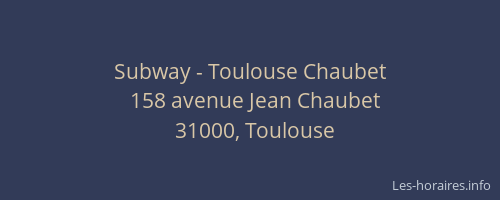 Voici les horaires de Subway - Chaubet situé à Toulouse,