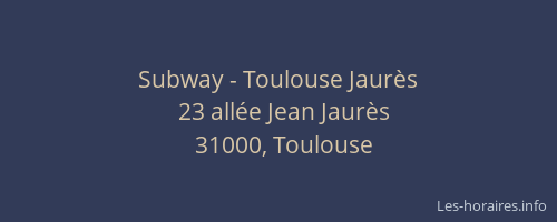 Voici les horaires de Subway - Jaurès situé à Toulouse,