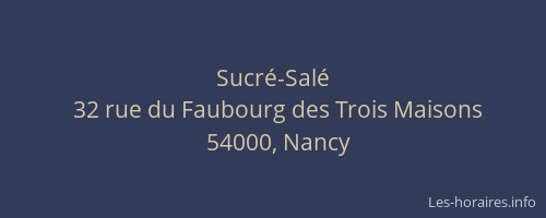 Voici les horaires de Sucré-Salé situé à Nancy,