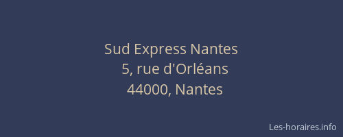 Voici les horaires de Sud Express situé à Nantes,