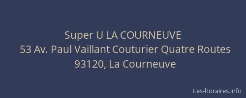 Voici les horaires de Super U LA COURNEUVE situé à La Courneuve,