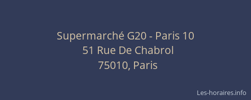Voici les horaires de Supermarché G20 - 10 situé à Paris,