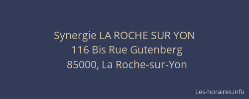 Voici les horaires de Synergie LA ROCHE SUR YON situé à La Roche-sur-Yon,